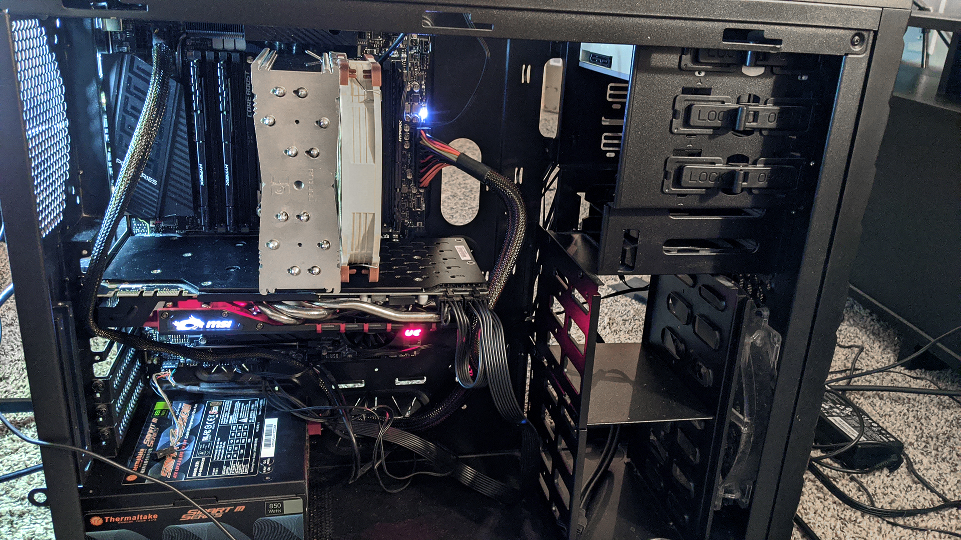 Some I already had, like the case, the power supply, and the graphics card. The rest I had to order, and wait 3 or 4 weeks as it showed up in dribs and drabs. Eventually though, 2 weeks ago, I had everything, and spent a Sunday afternoon putting it together: